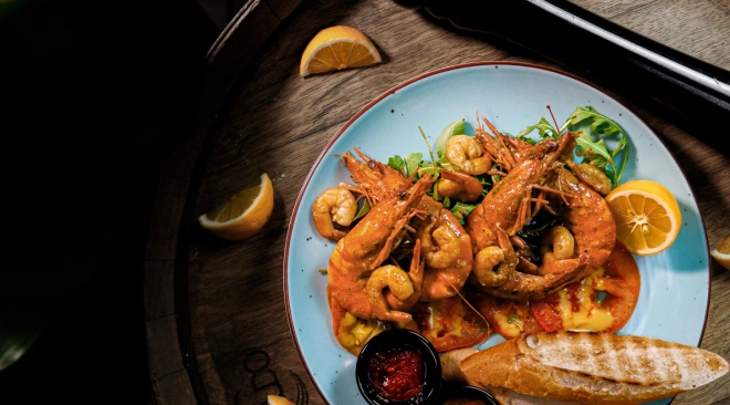 Jako przystawka proponuję krewetki w pomarańczowym sosie, delikatnie podgrzewane i podane na chrupiącej sałacie. Danie główne to soczysty stek z polędwicy wołowej, idealnie przyprawiony i dobrze usmażony. Do tego polecam pyszne puree ziemniaczane oraz grillowane warzywa.