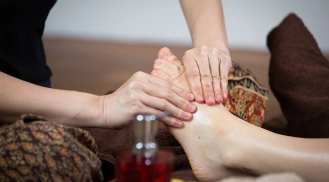 Podczas sesji tajskiego masażu stóp klient leży wygodnie na specjalnym stole, a terapeuta delikatnie masuje stopy, stymulując różne punkty akupresury. Jest to nie tylko niezwykle relaksujące, ale także pomaga w redukcji bólu stóp i poprawie ogólnego stanu zdrowia.